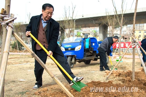 近日,山东大学师生纷纷开展植树活动,美化校园环境。3月13日上午,山东大学党委书记李守信,校长张荣,校党委常务副书记李建军,常务副校长王琪珑,校党委副书记仝兴华、陈向阳,总会计师曹升元,副校长胡金焱等在兴隆山校区参加植树活动。