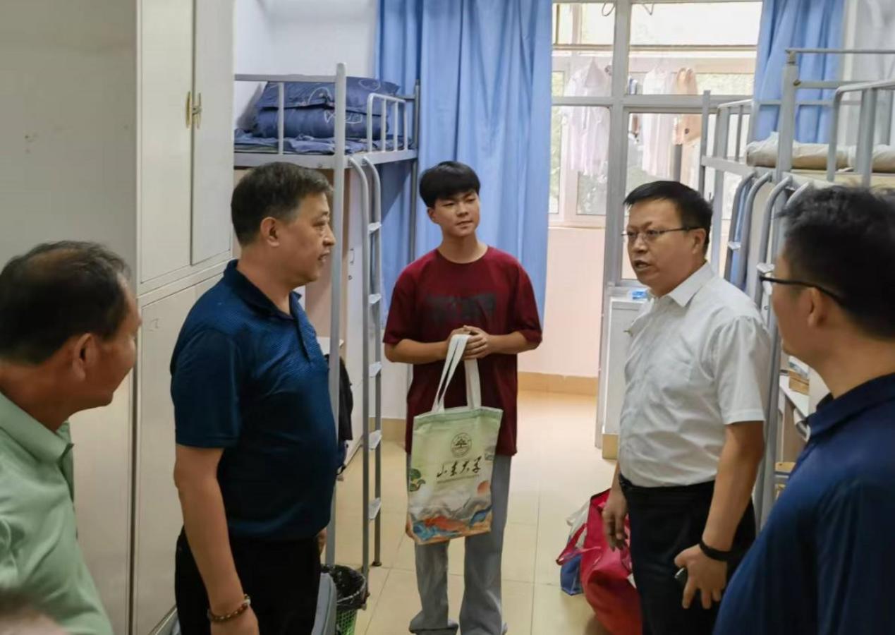 校长李术才来到新生报到点,向新生们表示热烈欢迎,并向工作人员表示慰问。在学生公寓,校领导与新生及家长热情交谈,送上关怀与祝福。
