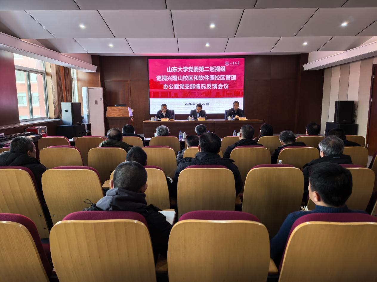 根据山东大学党委统一部署,2026年1月22日,山东大学党委第二巡视组向兴隆山校区和软件园校区管理办公室党支部反馈巡视情况。山东大学党委巡视工作领导小组成员、巡视工作办公室主任朱恪川,党委第二巡视组组长侯兴合,副组长王巍巍、孔雷出席会议。兴隆山校区和软件园校区管理办公室党支部书记、主任赵龙主持会议并作表态发言。会前,侯兴合向赵龙反馈了巡视意见。